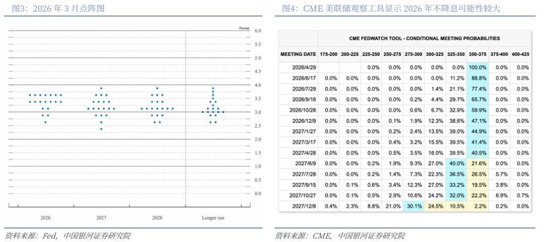 从定价框架看,本轮黄金下跌的核心原因在于利率逻辑显著压制了避险逻辑。中东冲突推动油价快速上行,布伦特原油一度升至100美元/桶以上,市场随之上修通胀路径。在此背景下,美联储政策预期发生明显变化。3月议息会议虽然维持利率不变,但点阵图显示多数官员仅支持0-1次降息,同时将2026年PCE与核心PCE通胀预期上调至2.7%。鲍威尔也明确表示,在未看到通胀进一步回落前不会降息,甚至不排除重新讨论加息的可能。利率预期的这一变化,使得实际利率中枢被动抬升,从而显著提高了持有黄金的机会成本。